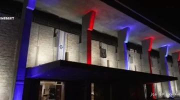 إضاءة مبنى الكنيست الإسرائيلي بألوان العلم الأمريكي احتفالاً بزيارة ترامب